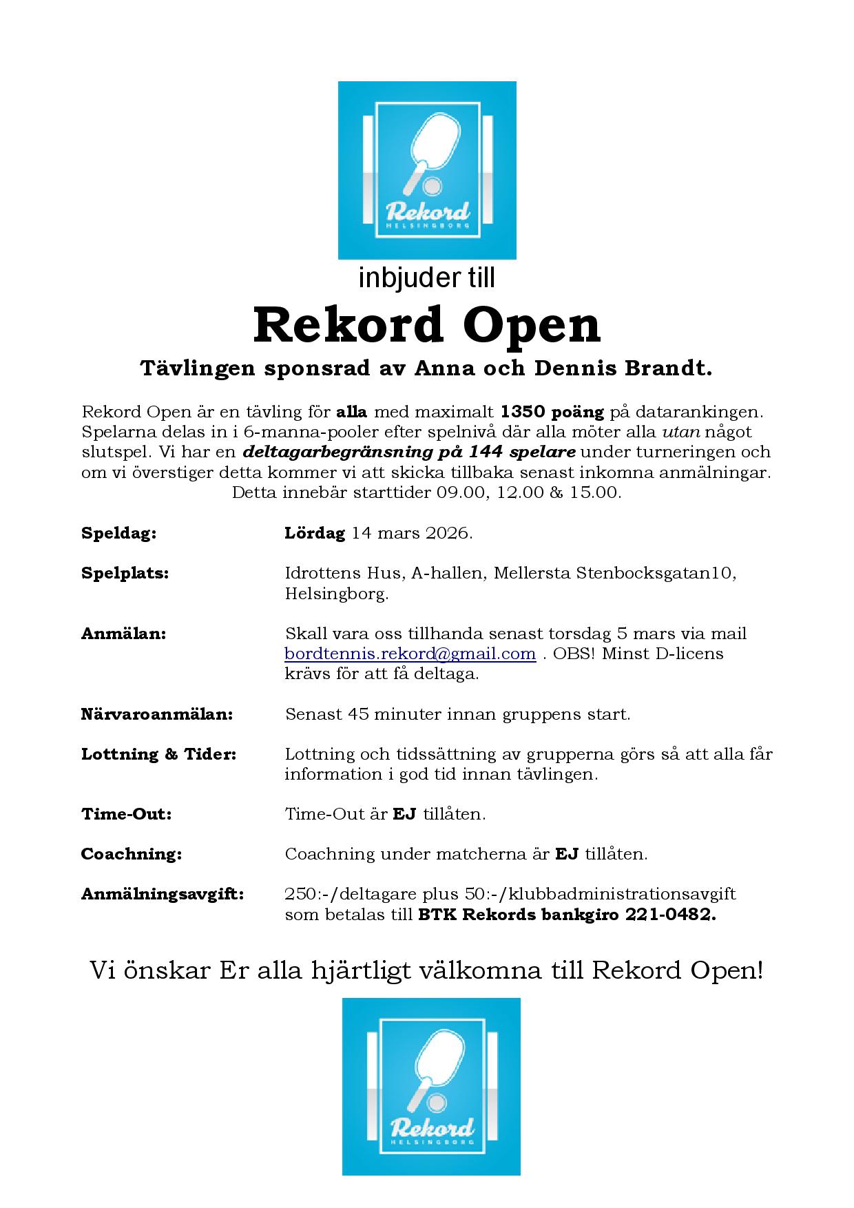 Rekord Open 14 mars9 februari, 2026/0 Kommentarer/i Okategoriserade/av ArvidHär hittar ni inbjudan till Rekord Open den 14 mars! Rekord open 14 mars 26 https://www.btkrekord.se/wp-content/uploads/2011/06/logotyp.png 0 0 Arvid https://www.btkrekord.se/wp-content/uploads/2011/06/logotyp.png Arvid2026-02-09 14:22:292026-02-09 14:22:29Rekord Open 14 mars