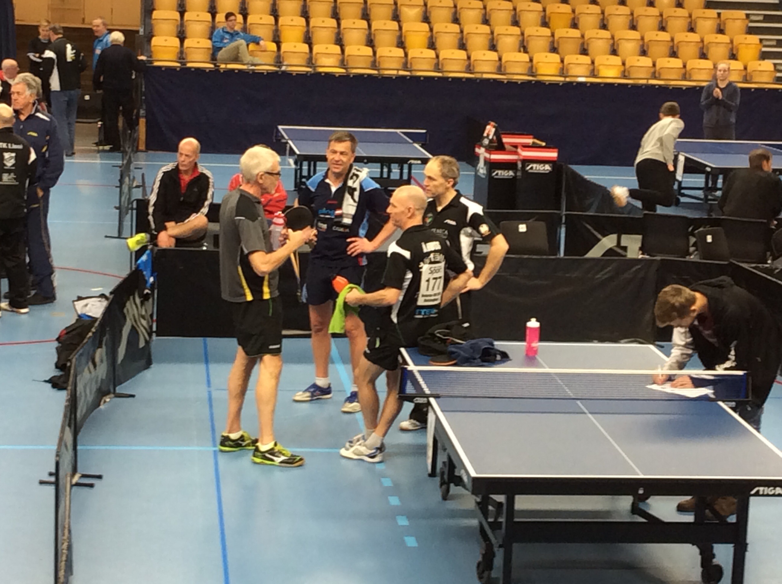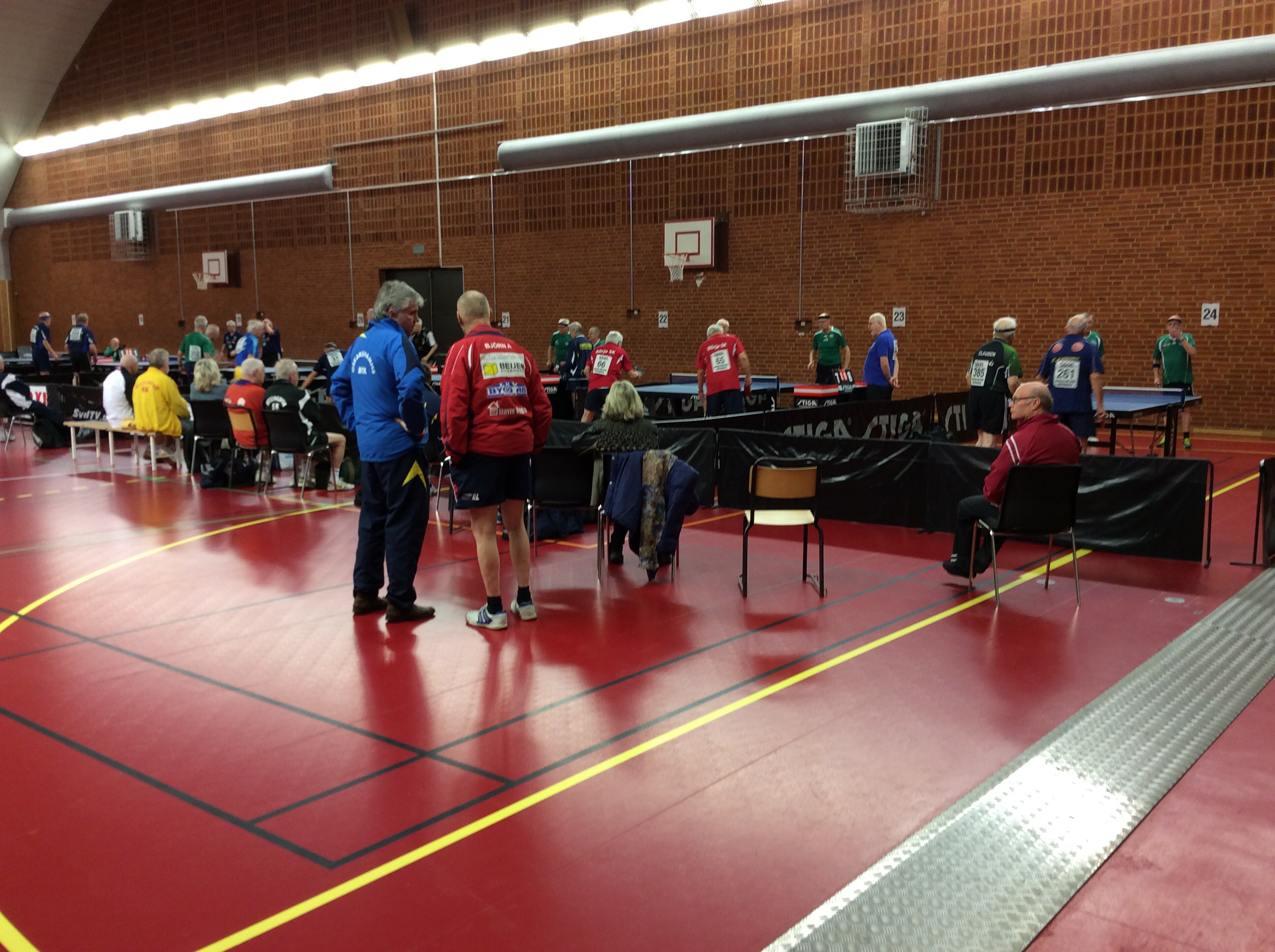 Det blev en väldigt lång dag med många dramatiska matcher där finalen i HS 40 mellan Vassunda och Riddaren var en av de stora guldglimtarna där Vassunda till sist slet hem sista avgörande matchen med 11-9 i femte. En annan ögonbrynshöjare var kvällens sista match där KFUM Norrköping till slut kunde avgöra mot Tullinge när klockan passerat 22.40! Det får nog bli en snabb öl på hotellet innan grabbarna förbereder sig för morgondagens spel!